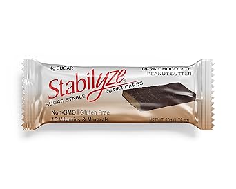 Amazon Com Stabilyze Nutrition Bars Dark Chocolate Peanut Butter Low Sugar Protein Bar W 21 Essential Vitamins Minerals Gluten Free Non Gmo Keto Friendly Snacks Individually Wrapped 12 Pack
